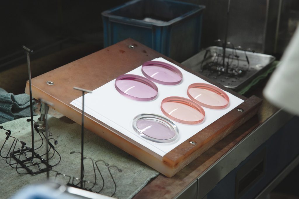 堀 お客様からの色見本をもとに、レンズの素材や温度管理を微調整しながら、職人が目で見て色をつけていきます。