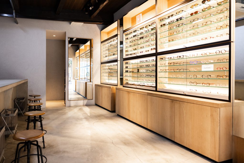 お店づくりにおいては、いわゆる「眼鏡店らしさ」にとらわれない空間を意識しています。インダストリアルな雰囲気の店内に、アメリカやフランスなど海外ブランドを中心とした個性豊かなフレームを厳選しており、ファッションのセレクトショップに入るような感覚で楽しんでいただけると思います。